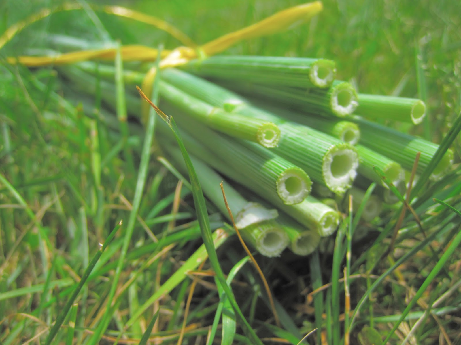 Making the dill bunches is easy enough to do, but it does require some attention to detail. When I pulled the plants and shook the dirt loose from their roots, I made sure that none of that dirt got onto the delicate leaves. I did not to wash them. I wanted no debris on them. I pulled them and tapped their roots systems gently on the ground. I kept their tops high and proud. I moved among the row, carefully and swiftly. I hauled the bunches to the lawn, arranged them with a modicum of care, and went to find my knife. Then I took the suckers to the shade of the backyard to clean them and tie them up. I made myself prone on the grass and it looked like this when I did.